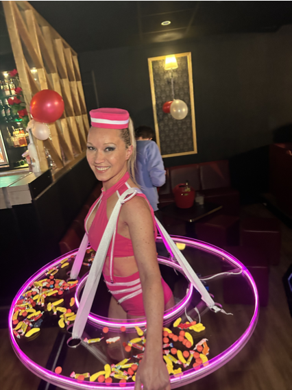 Passage Hôtesse plateau lumineux pour une distribution de Goodies ou confiseries
