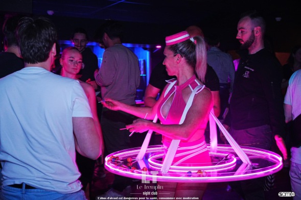 - Passage hôtesse plateau lumineux pour une distribution de bonbons et goodies